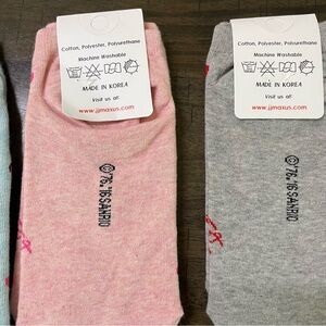 3 pairs adorable ankle socks featuring Hello Kitty. Brand JJMaxUS. Design woven, not printed, so colors stay vibrant. Fit size 5-6. Machine washable.