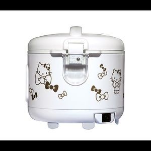 The Zojirushi x Hello Kitty Automatic Rice Cooker & Warmer features gold Hello Kitty graphics.
