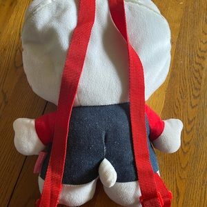 Hello kitty backpack super cute with her original outfit overalls and a red T-shirt super cute everything in perfect condition except the zipper is broken but it can be fixed hence price (: from 2011 <3