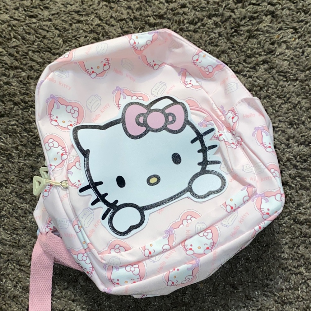 Charming Hello Kitty backpack in light pink. Features iconic Hello Kitty face.