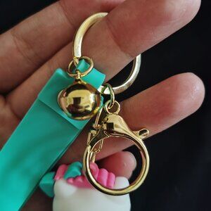"Awesome Hello Kitty baker keychain has key ring, key clip and a bell on a wrist strap . Great gift for the baker in your life !