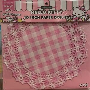 Brand New Handstand Kitchen Hello Kitty Mini Cake Making Set and 10 inch Paper Doilies