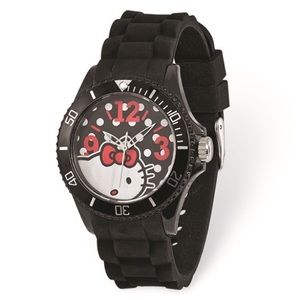 Hello Kitty Black Dial Black Silicone Strap Watch