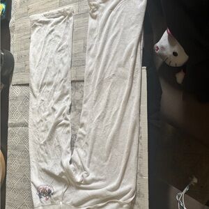 Set of black and white sweatpants featuring Hello Kitty design. Comfortable and stylish for casual wear.. I bought the hello Kitty at Primark never used. I bought them for my daughter the hello Kitty ones the white cloth juicy couture pants. They’re a little more baggy they are used.