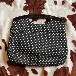 Stylish Hello Kitty tote with black and white polka dots. Features iconic Hello Kitty design. Perfect for everyday use.