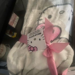 White and grey Hello Kitty blanket.