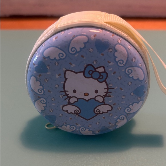 Cute Hello Kitty case with a blue heart design. Perfect for fun and play.