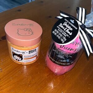 Hello Kitty Body Scrubs and unicorn bathbomb and body glitter bundle. All brand new.