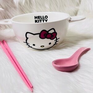 Hello Kitty 6.5 ceramic bowl with chopsticks and spoon