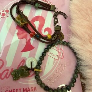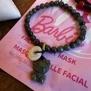 -Jade Beaded Hello Kitty Bracelet and Brown cord HK Bracelet EUC