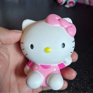 comes with a small hello kitty plushie, 2 hello kitty coin purses, a hello kitty figurine toy and a hello kitty squishy stress toy. selling everything together!