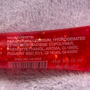 • Format: A moisturizing lip oil or gloss housed in a squeeze tube with a glittery finish.