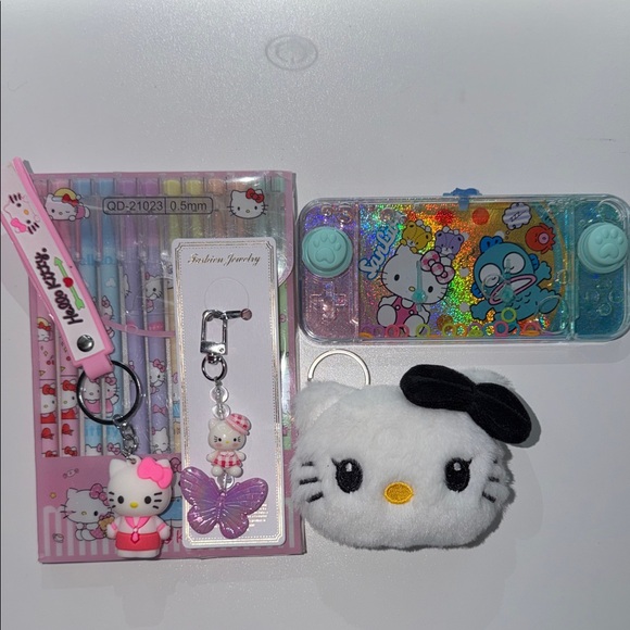 Included in bundle of (5): pack of (12) Hello Kitty pencils, (2) Hello Kitty key charms, a Hello Kitty and Hangyodon water game, and a Hello Kitty plush key charm!