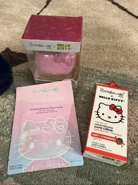 3 crème shop items -bath bomb, hand crème & mask