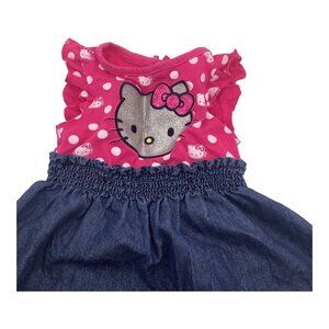 Hello Kitty By Sanrio Pink Dress Baby Girl 18M Polka Dot & Denim Ruffle Bow
