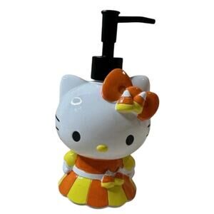 Add a playful touch to your home décor with this adorable Hello Kitty soap or lotion dispenser. Featuring Hello Kitty dressed in a festive candy corn outfit, this piece is perfect for Halloween or year-round Hello Kitty fans. Durable pump top works great for soap, lotion, or sanitizer. Brand new and never used, ready to brighten up your bathroom, kitchen, or vanity space. A fun collectible for Sanrio lovers and the perfect seasonal accessory.