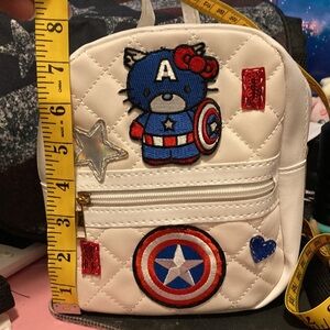 It’s Hello Captain Kitty with her super shield! Fourth of July is coming! Show your spirit with this red white and blue bag!
