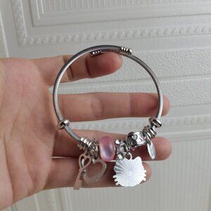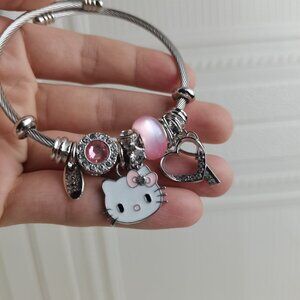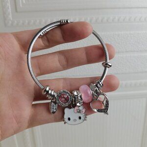 Hello Kitty Charm Pendant Tone Bangle Bracelet Pink