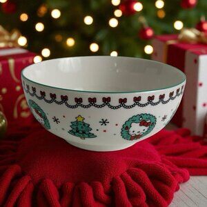 Hello Kitty Christmas Holiday Trees/Wreath Ceramic Bowl Set of 2 6" NEW