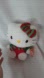 Charming Hello Kitty plush with winter scarf and a striped red and green bow.