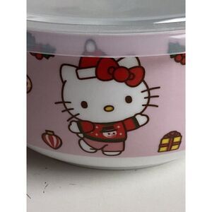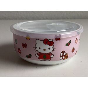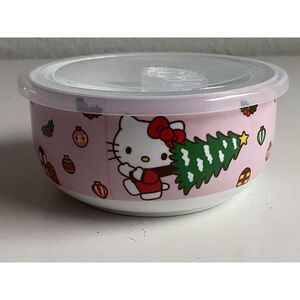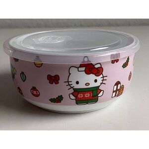 Hello Kitty Christmas Pressure Lid Ceramic Food Storage Bowl Container Holiday Wreath Tree Mittens Ornaments Gifts Pink NEW MEDIUM