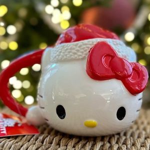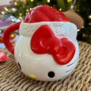 New Hello Kitty Christmas mug. bow and Santa hat. Large drink opening.