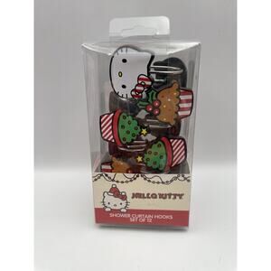 Hello Kitty Christmas Shower Curtain Hooks Red Green Trees Cupcakes Set Of 12