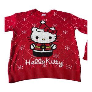 Hello Kitty Christmas Sweater Santa Red L Hybrid Apparel Holiday Knit Preowned