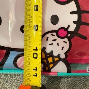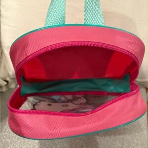 Cute Hello Kitty clear backpack with pink and teal accents.