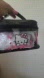 Clear cosmetic bag featuring Hello Kitty design. Black trim with pink accents. Blending sponges included. Make-up not included.