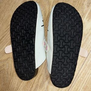 Hello Kitty Clogs. Worn a couple of times and show a bit of scuff marks (shown in 2nd and 3rd picture) size 6. It does have some lint that can be removed with lint roller.