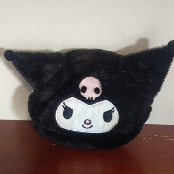 This adorable black plush hat features a cute character design, perfect for kids. Soft and comfortable, it's a fun accessory for any outfit.