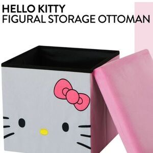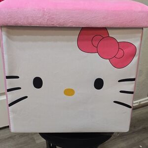 Adorable storage box with Hello Kitty design. Pink sides and white front with cute face and bow.