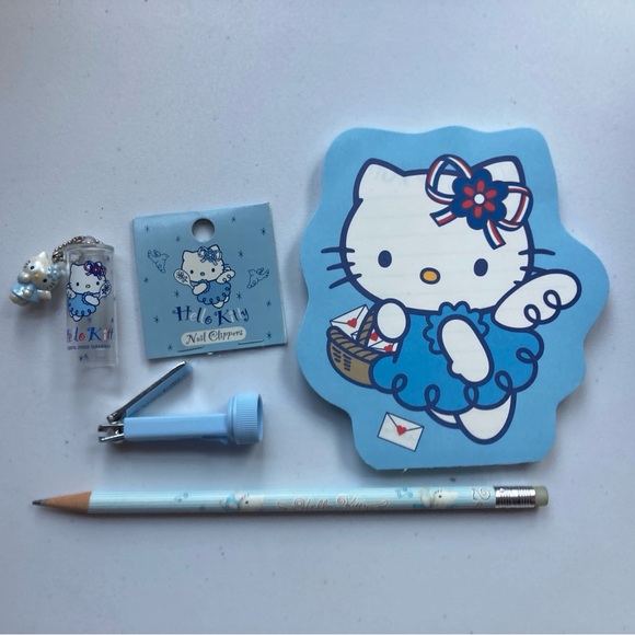 Light blue Hello Kitty stationary pad, pencil, & nail clippers. Good condition. Slight use on pencil—see pictures.