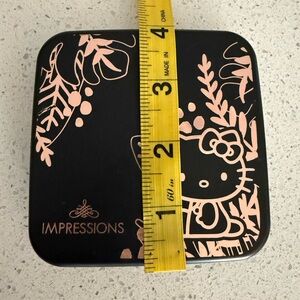 Chic Hello Kitty compact mirror. Sleek black frame with white accents. Ideal for quick touch-ups. Pre-loved in excellent condition. Batteries included.