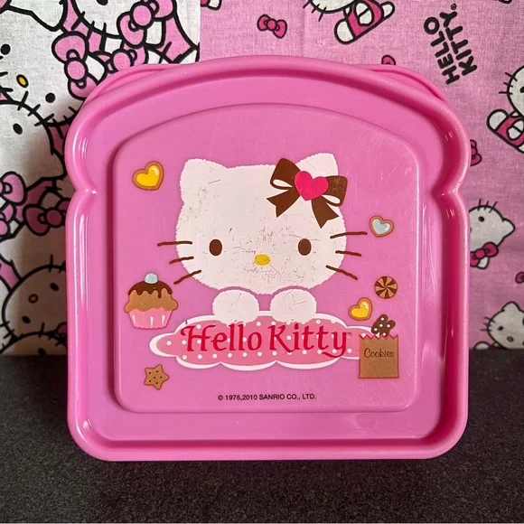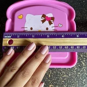 cute hello kitty sandwich container. does have scratches on the front but otherwise it’s in good condition. measurements included.