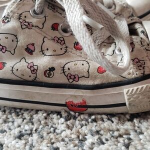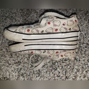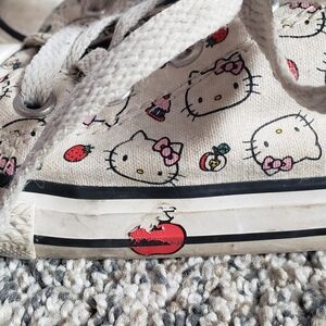 These are pre-loved but well taken care of Hello Kitty × Converse Sneakers. The apple logo on the sides are a bit worn as shown in pictures but they are in excellent condition and have many more years left in them! They are also a collectable for those that love Hello Kitty!
