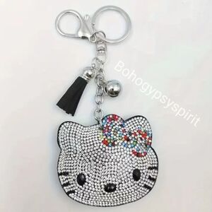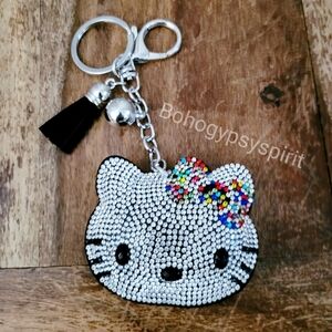Hello Kitty Crystal Rhinestone Keychain Bag Charm with Tassel