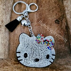 Tag: Hello Kitty, Multicolor Bow, Sanrio, Crystal, Rhinestone, Pink, Red, Blue, Geen, Black, Yellow, Silver, Luxury, Keychain, Backpack, Bag Charm, Diaper Bag, Purse Charm, Accessories, Tassel, Keyfob, Keyring, Bling, Wristlet.
