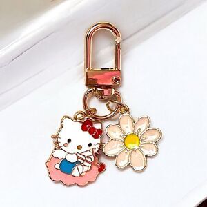 Hello Kitty Cupid Pink Flower Bag Charm Keychain