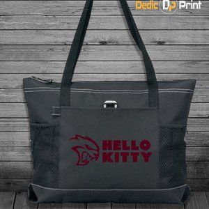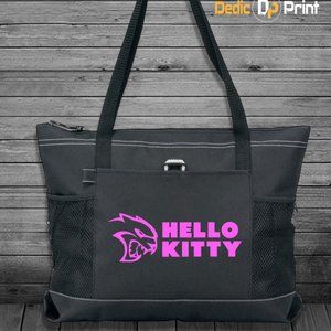 Hello Kitty Dodge HellCat SRT Inspired Zippered Tote Bag made to order with many imprint colors available. Please leave comment if you prefer color change.