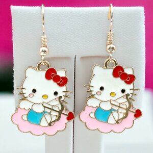 These Hello Kitty earrings feature Hello Kitty with a heart bow and arrow. These adorable Hello Kitty earrings are perfect for every day wear.