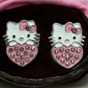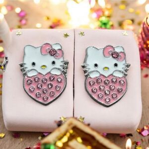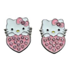 Hello Kitty Earrings Pink Rhinestone Enamel Heart Pierced Ears Cat Studs Jewelry