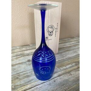 Hello Kitty Edo Kiriko Cobalt Blue Cut Glass w/ Wooden Box Sanrio Japan 2017