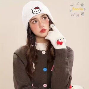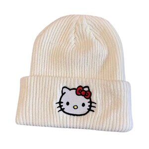 Hello Kitty Embroidered Ladies Winter White Beanie Hat With Cuff NWT