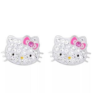 Hello Kitty Fine Silver Plated Logo Studded Crystal Earrings