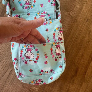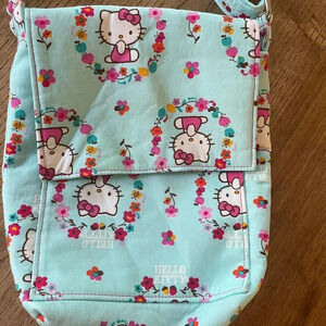 Hello Kitty Flower Paradise Blue Crossbody Bag Adjustable Strap Snap Closure EUC