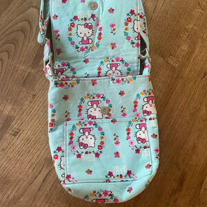 Hello Kitty Flower Paradise Blue Crossbody Bag Adjustable Strap Snap Closure EUC