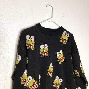Hello Kitty Forever 21 Keroppi black green frog sweater size Medium