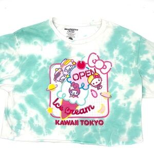 Hello Kitty & Friends Tie-Dye Kawaii Graphic T Crop Top Sanrio Women’s Sz Large